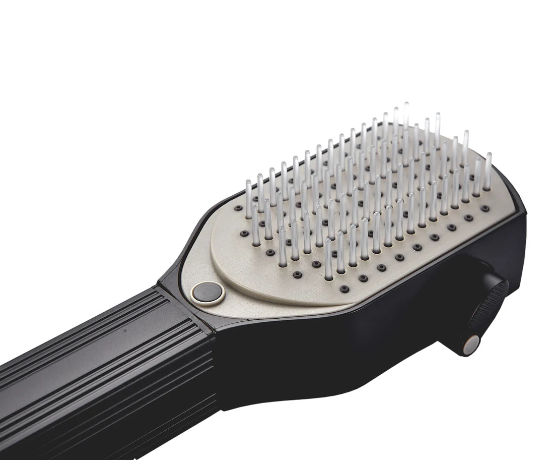 For salon-style hair treatment, wet your hair, apply a hydrating hair product, and use the bristles to distribute the product evenly. Then, massage the scalp with high pressure water for the ultimate soothing experience.