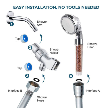 Enjoy a luxurious Spa experience with Our high-pressure Ionic Shower Head!